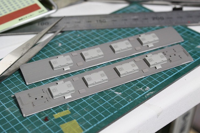 ですが、キットの屋根板にモールドされているパンタ台と、